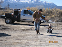 It was a nice day and we decided to take advantage of it. Morgan was pulling the boys around on their four wheeler. They thought it was the coolest thing. Notice Morgan's welding rig in the background, he made sure it was in the shots. He's so proud of Maria-that's his truck!